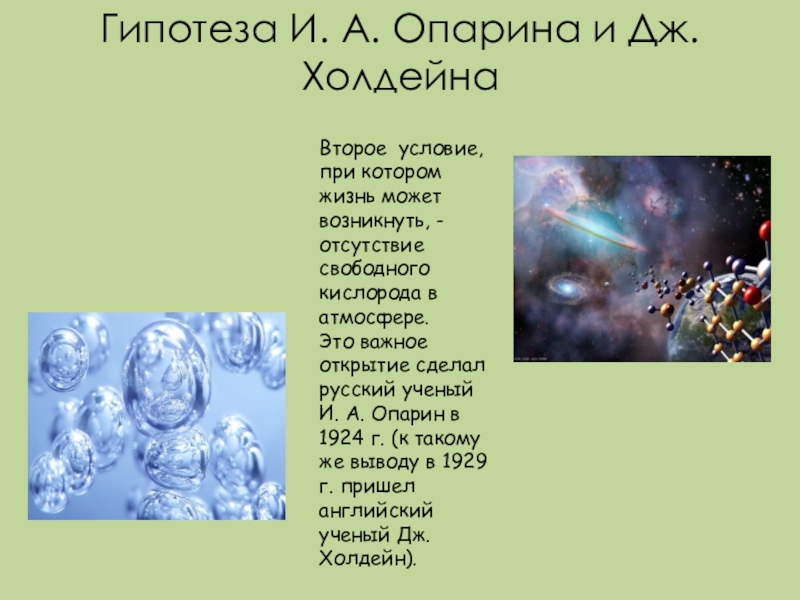 Слайд 27Гипотеза И. А. Опарина и Дж. Холдейна