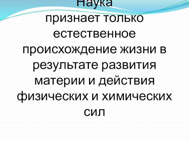 признает только естественное происхождение жизни в результате развития материи и