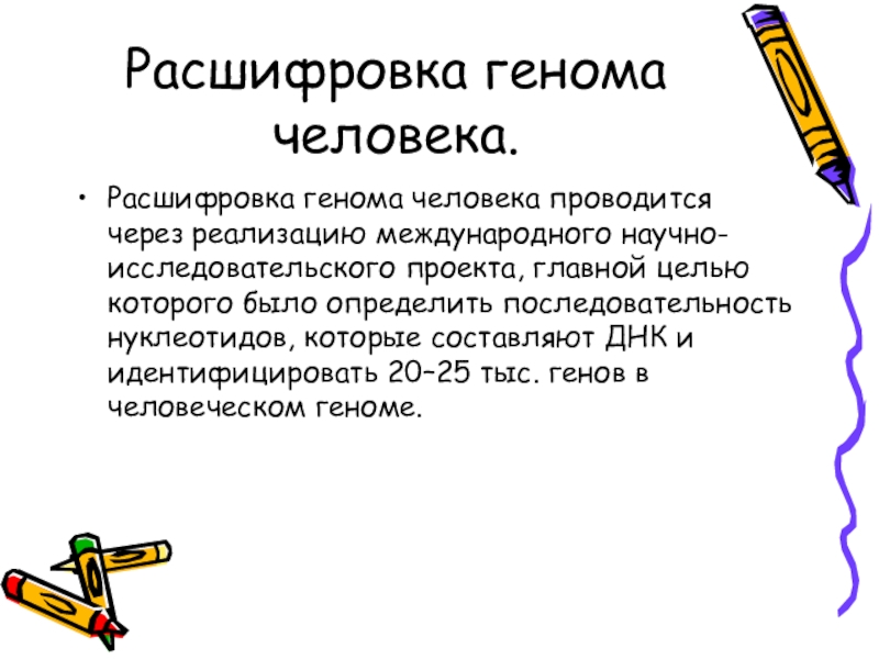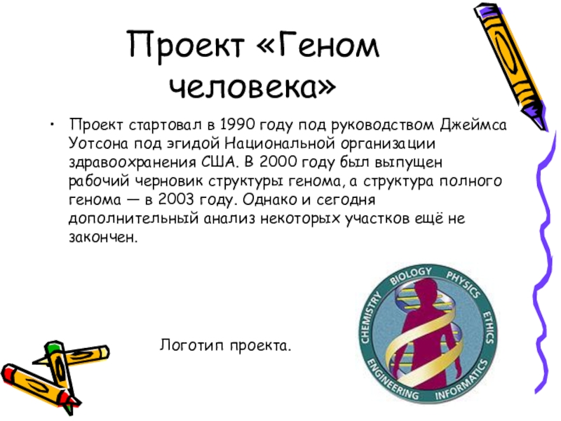 главной целью которого было определить последовательность нуклеотидов, которые составляют ДНК и идентифицировать 20–25 тыс. генов в человеческом геноме.