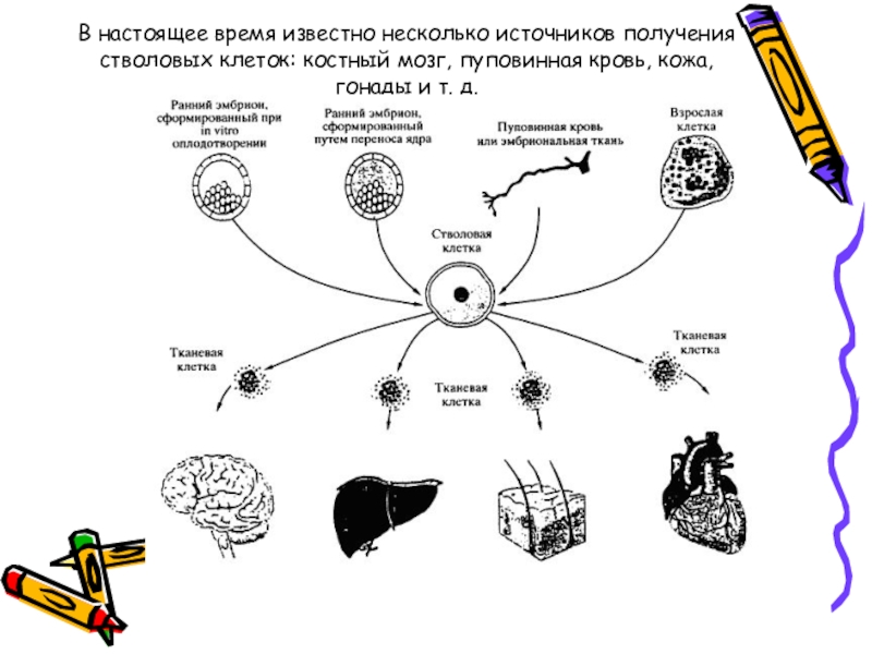 Слайд 9В настоящее время известно несколько источников получения стволовых клеток: костный мозг,