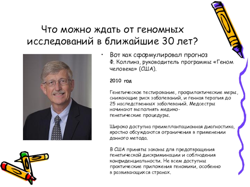 Ф. Коллинз, руководитель программы «Геном человека» (США).