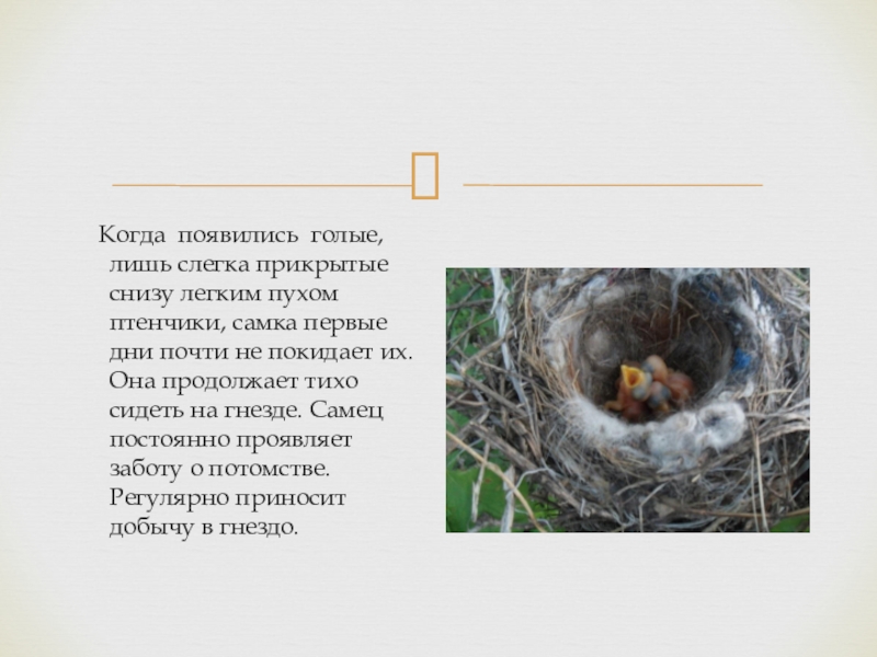 птенцы, птенцы голенькие беспомощные. После появления птенцов родители становятся беспокойными и крикливыми.