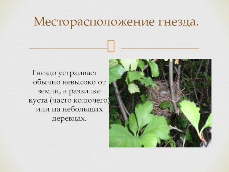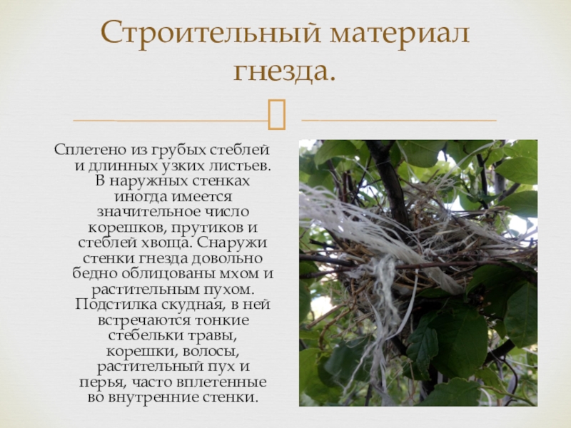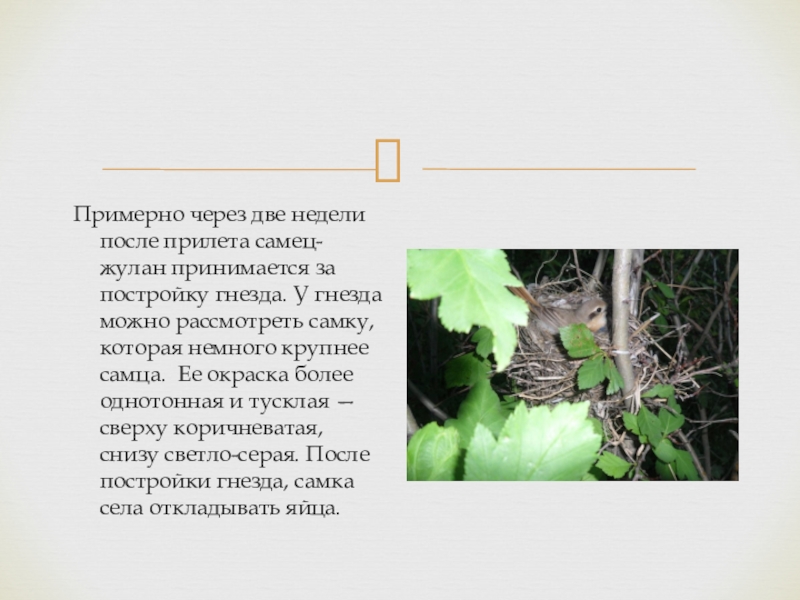 Слайд 14 Примерно через две недели после прилета самец-жулан принимается за постройку