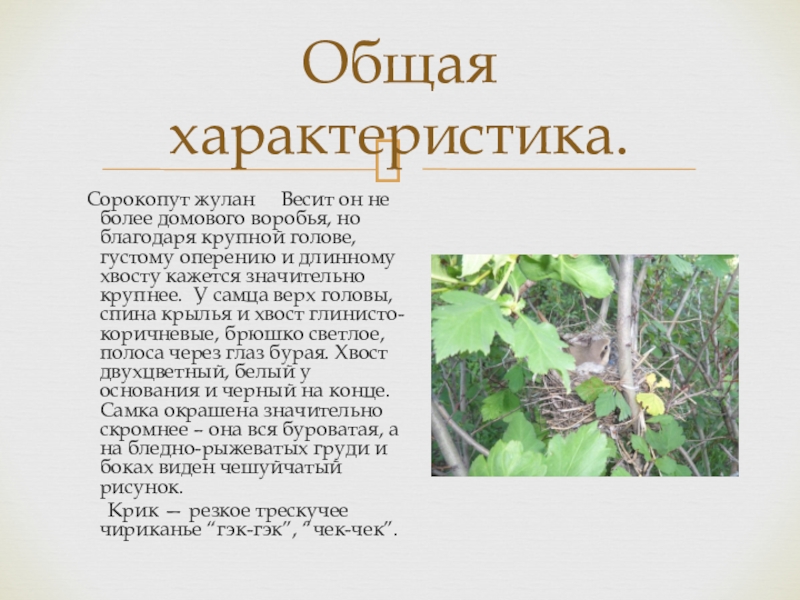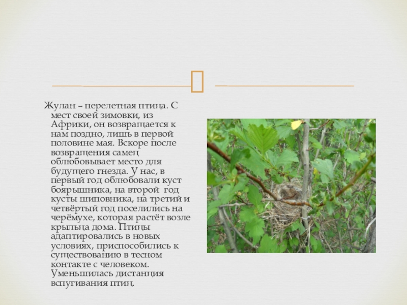 Слайд 13 Жулан – перелетная птица. С мест своей зимовки, из