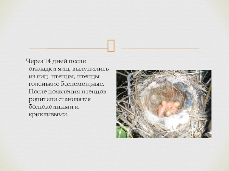 Слайд 16 Через 14 дней после откладки яиц, вылупились из яиц