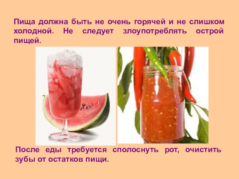После еды требуется сполоснуть рот, очистить зубы от остатков пищи.