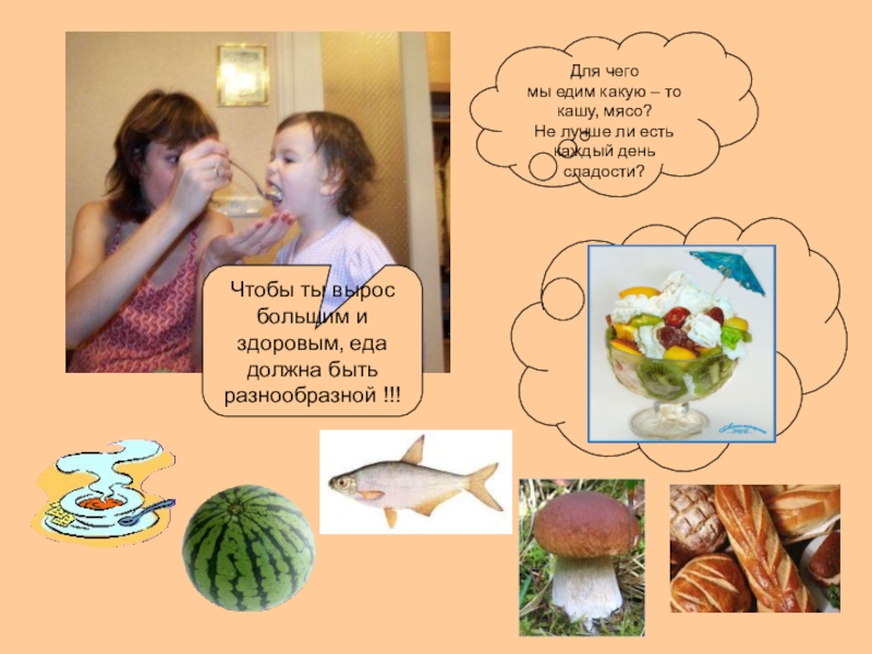 Чтобы ты вырос большим и здоровым, еда должна быть разнообразной !!!