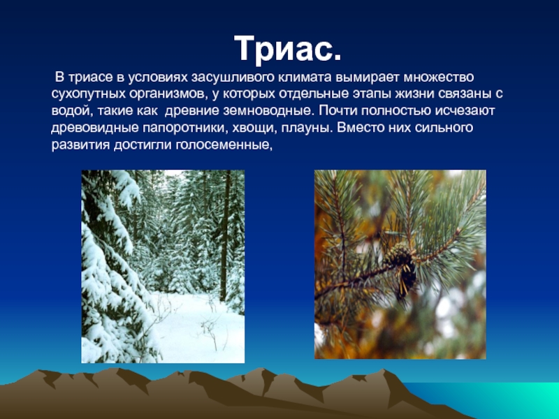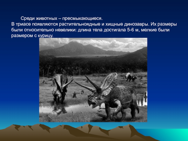 Слайд 12Уже в триасе возникают первые представители теплокровных – мелкие примитивные млекопитающие.