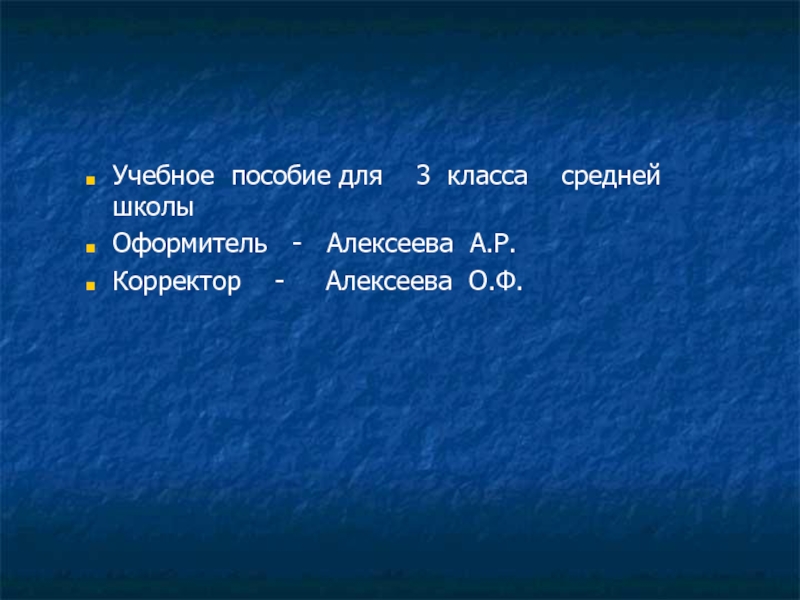 Учебное пособие для  3 класса  средней школы  Оформитель  -  Алексеева А.Р.Корректор