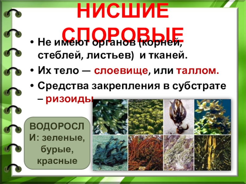 ВОДОРОСЛИ: зеленые, бурые, красные