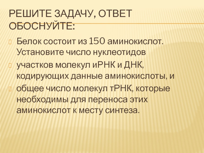 Белок состоит из 150 аминокислот. Установите число нуклеотидов
