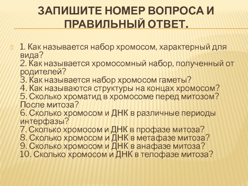 Слайд 7Запишите номер вопроса и правильный ответ.