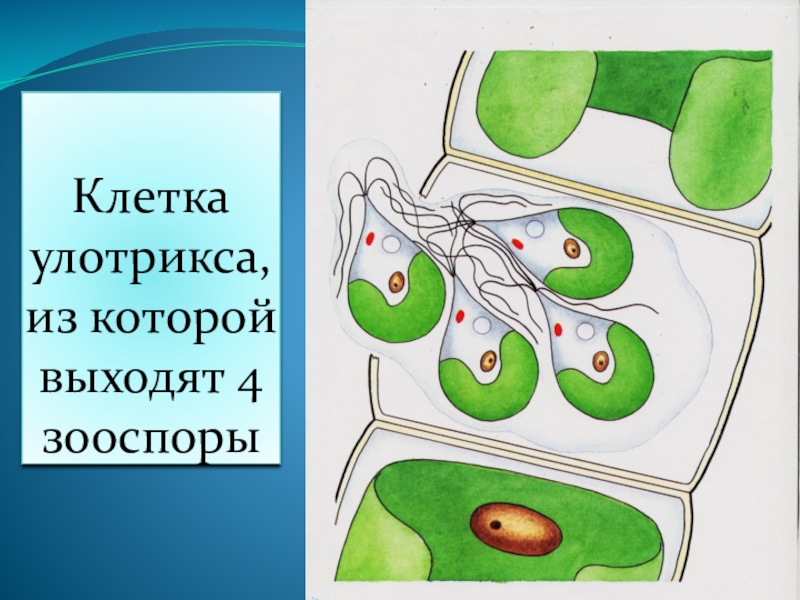 Слайд 3Клетка улотрикса,из которой выходят 4 зооспоры