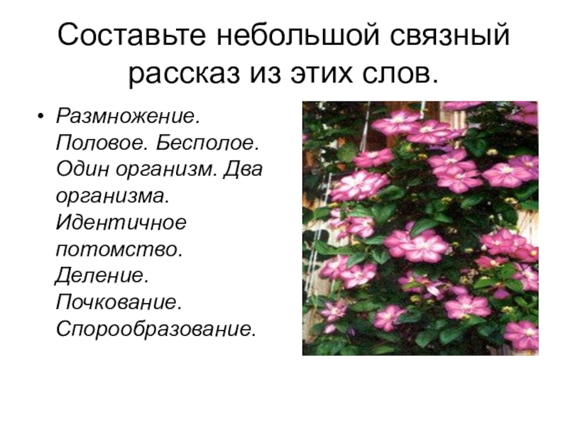 сложных в жизни организмов. Благодаря этому – каждое растение или животное оставляет после себя потомство, и этот процесс повторяется снова и снова. Преемственность организмов создает бессмертие вида. Какой же процесс присущ всем живым организмам и создает бессмертие вида?