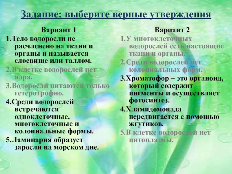 1.У многоклеточных водорослей есть настоящие ткани и органы.