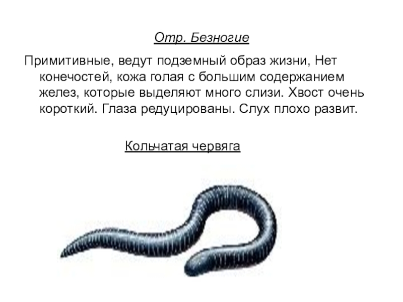 Примитивные, ведут подземный образ жизни, Нет конечостей, кожа голая с