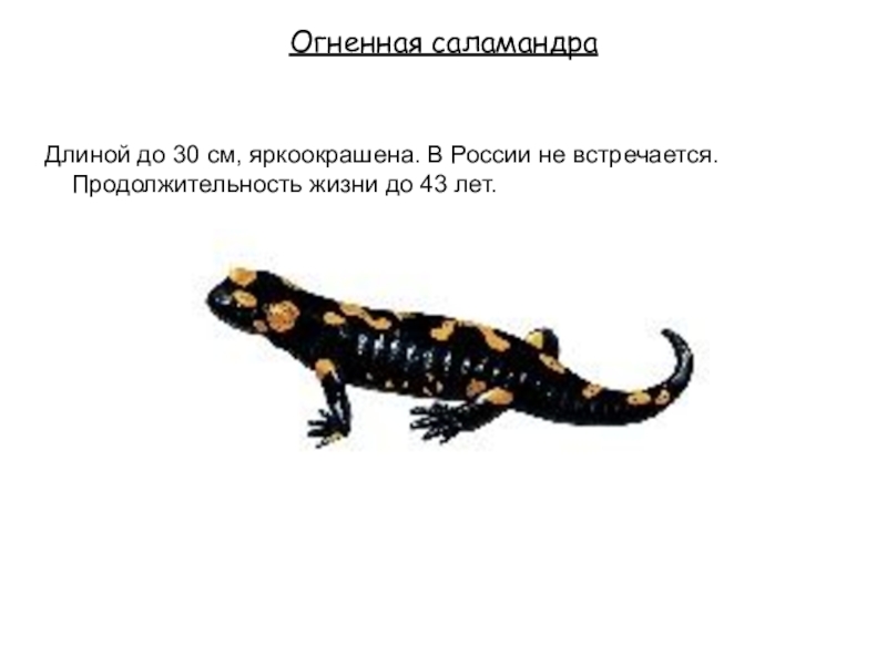 Исполинская саламандра - длина до 1,5 метров. Живет в реках Японии и Китая. Редко выходит на сушу, вдет ночной образ жизни.