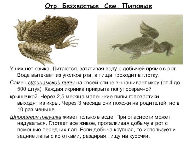 Слайд 3Отр. Безхвостые Сем. Пиповые