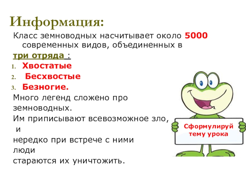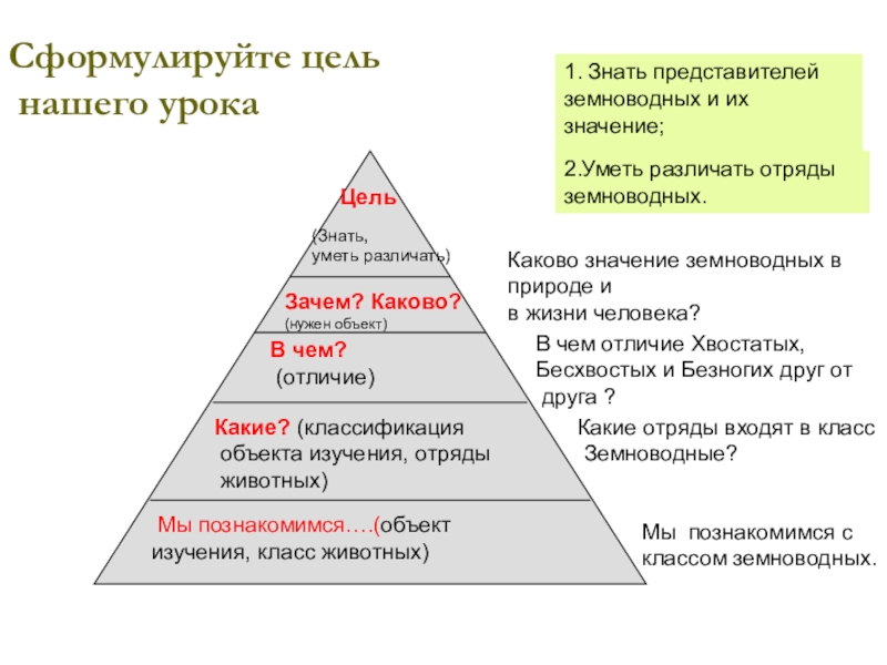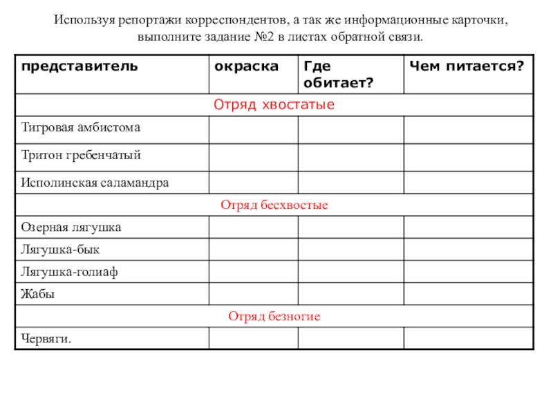 1. Знать представителей земноводных и их значение;