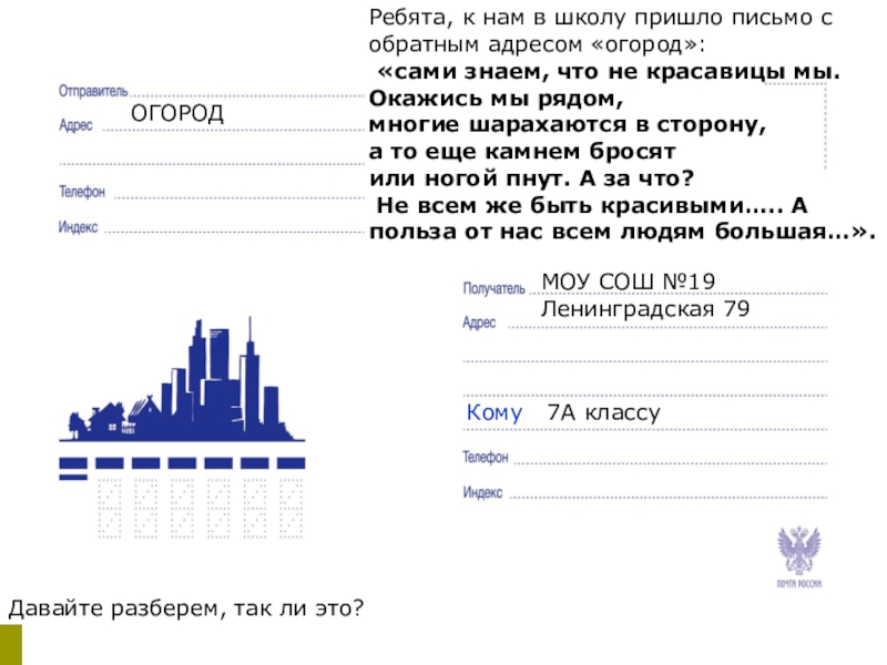 Ребята, к нам в школу пришло письмо с обратным адресом «огород»:
