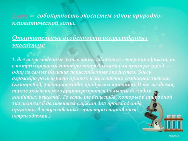 Слайд 10Агроэкосистемы — это один из видов искусственных экосистем, созданных человеком. Они