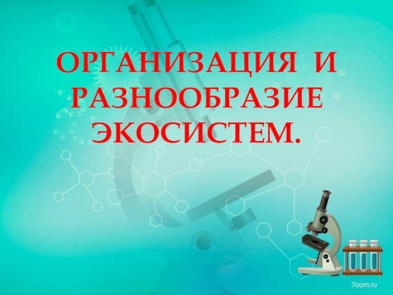 Слайд 1ОРГАНИЗАЦИЯ И РАЗНООБРАЗИЕ ЭКОСИСТЕМ.