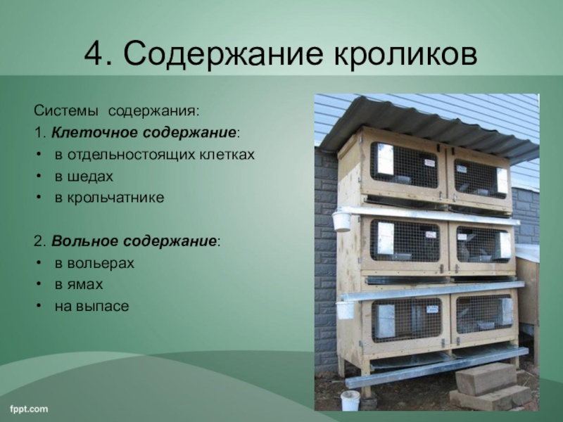 Слайд 10Молодняк отсаживают в индивидуальные клетки раздельно по полу, по 3-5 головы.