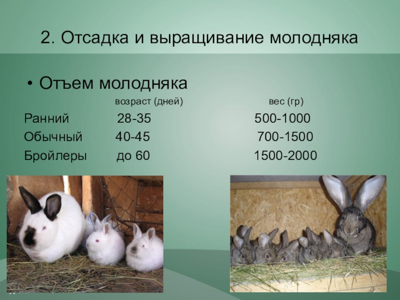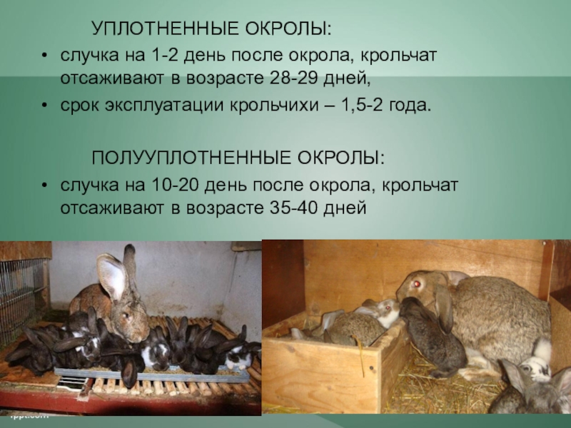 окрола, крольчат отсаживают в возрасте 28-29 дней,