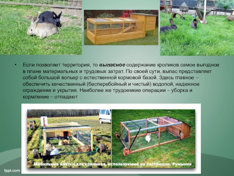Слайд 33Если позволяет территория, то выпасное содержание кроликов самое выгодное в плане