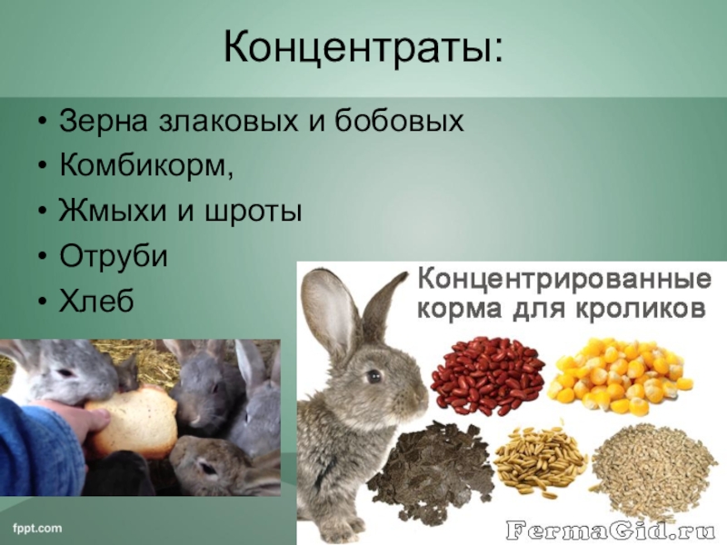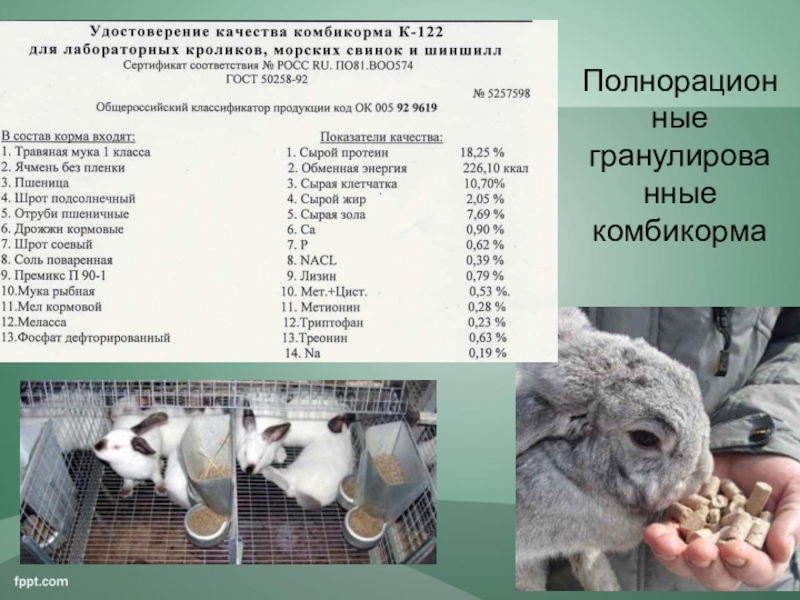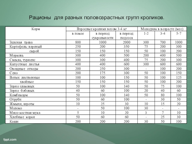 Слайд 25Рационы для разных половозрастных групп кроликов.