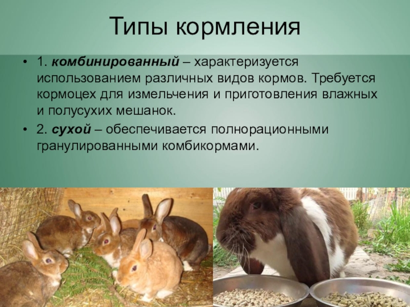 1. комбинированный – характеризуется использованием различных видов кормов. Требуется