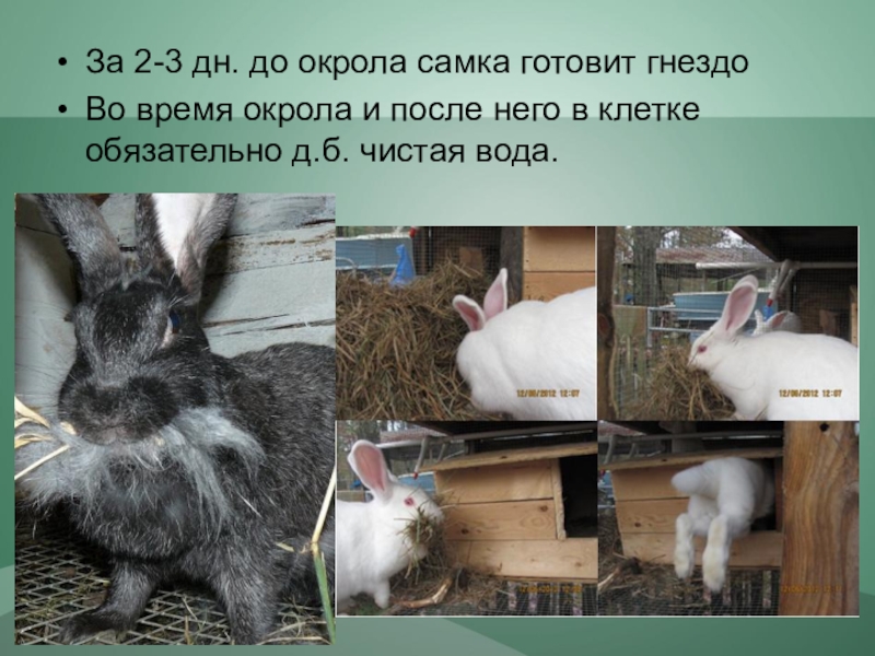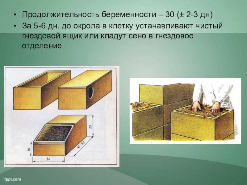 Слайд 5За 2-3 дн. до окрола самка готовит гнездо