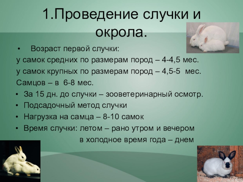 случка на 10-20 день после окрола, крольчат отсаживают в возрасте 35-40 дней