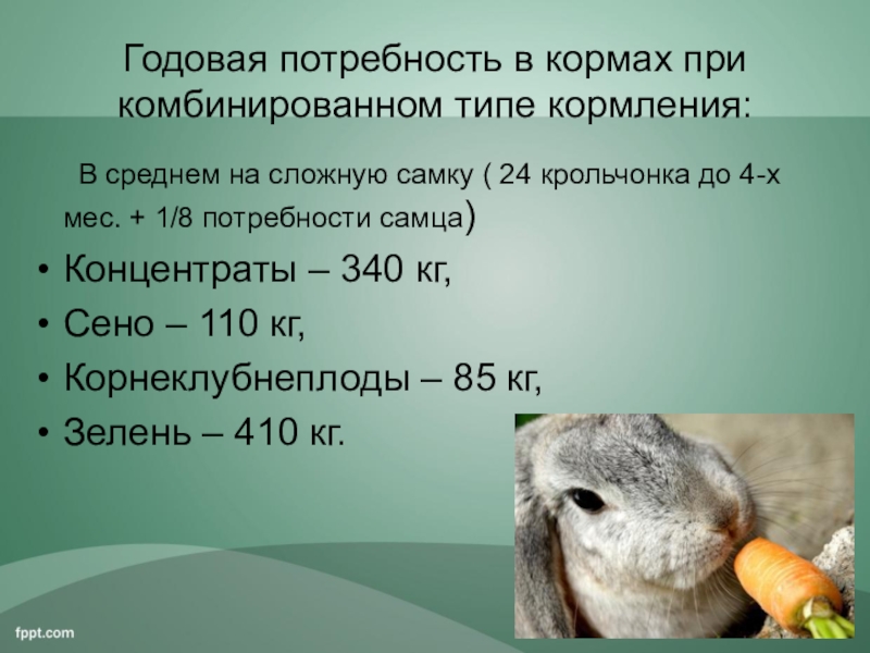 среднем на сложную самку ( 24 крольчонка до 4-х мес. + 1/8 потребности самца)