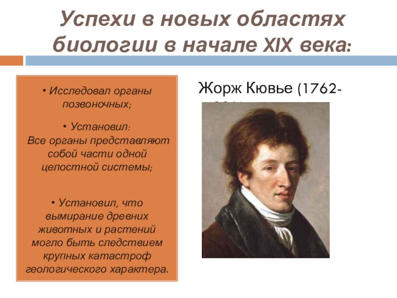 Слайд 13Успехи в новых областях биологии в начале XIX века: