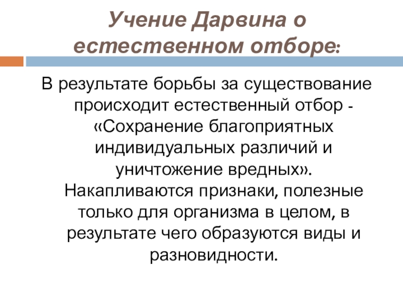 отбор - «Сохранение благоприятных индивидуальных различий и уничтожение вредных».