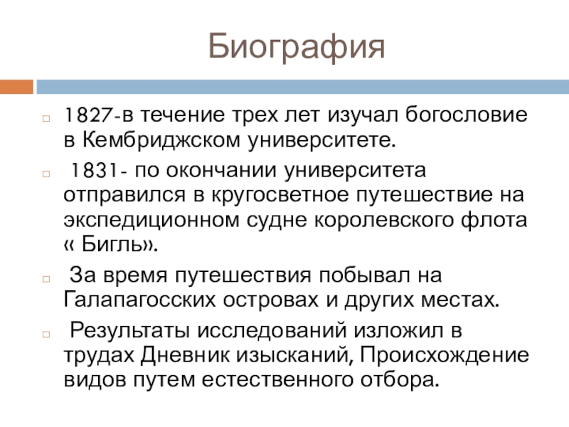 по окончании университета отправился в кругосветное путешествие на экспедиционном судне королевского флота « Бигль».