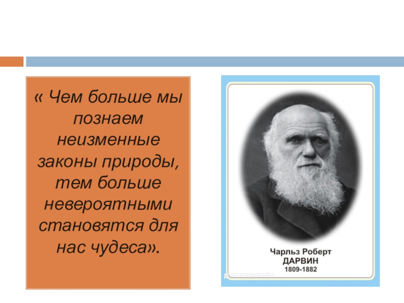 Слайд 5« Чем больше мы познаем неизменные законы природы, тем больше невероятными