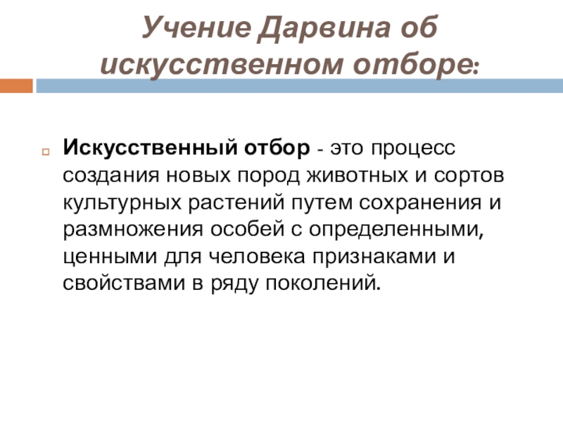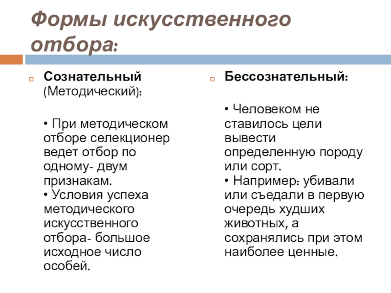 • Например: убивали или съедали в первую очередь худших животных, а сохранялись при этом наиболее ценные.