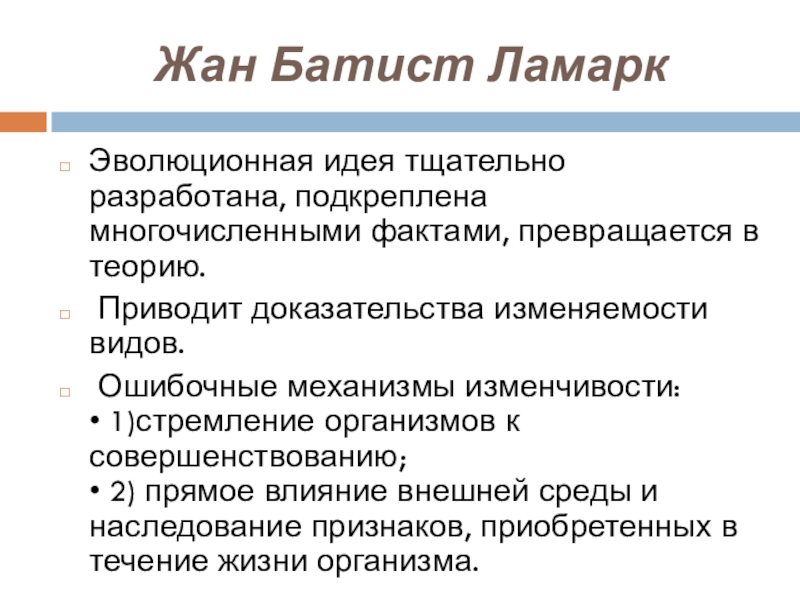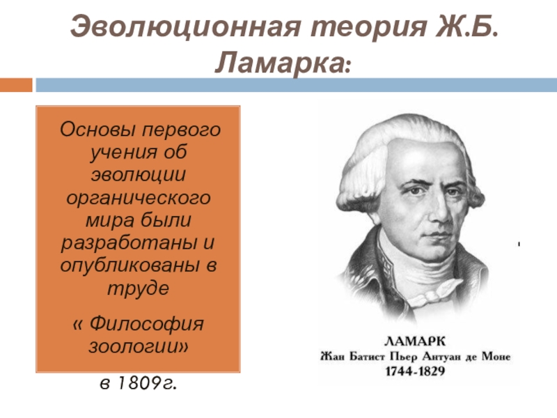 Познакомить учащихся с работами Ж-Б Ламарка и других ученых.