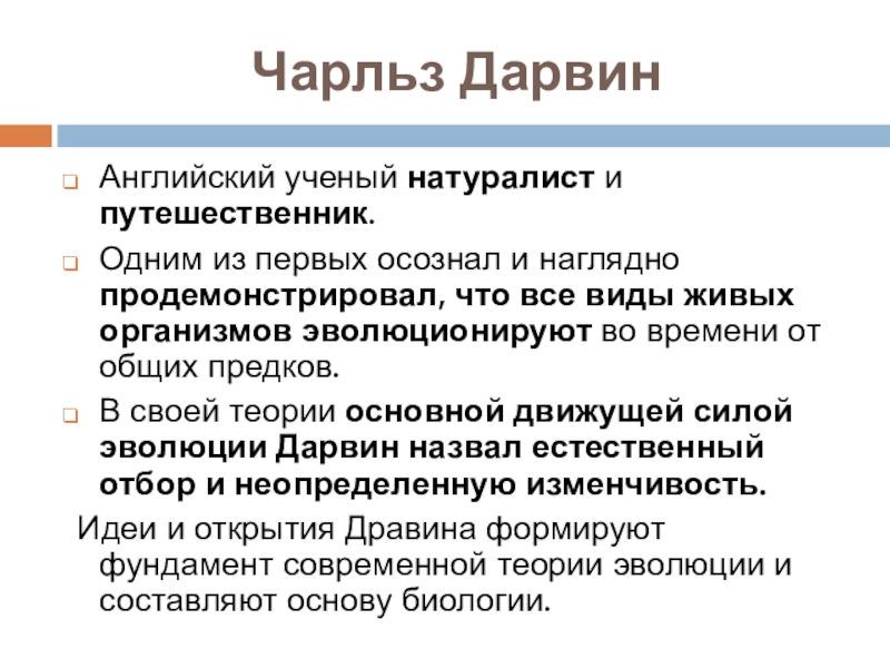 Слайд 18Основные положения эволюционного учения Чарльза Дарвина.