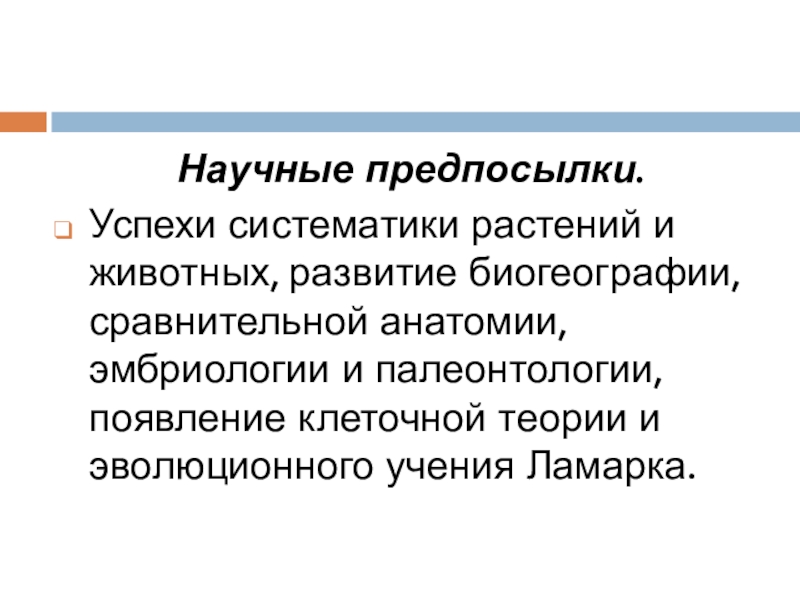 Слайд 16Предпосылки возникновения эволюционной теории Дарвина: