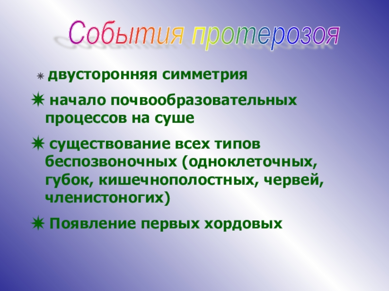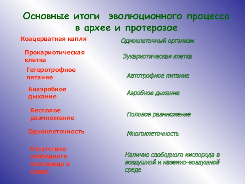 Основные ароморфозы протерозоя