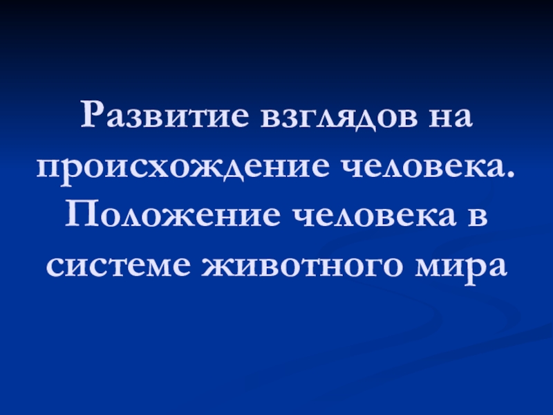 Слайд 1Развитие взглядов на происхождение человека. Положение человека в системе животного мира