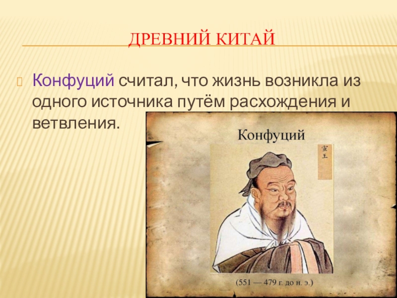 Конфуций считал, что жизнь возникла из одного источника путём расхождения