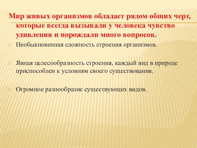 Слайд 3Мир живых организмов обладает рядом общих черт, которые всегда вызывали у