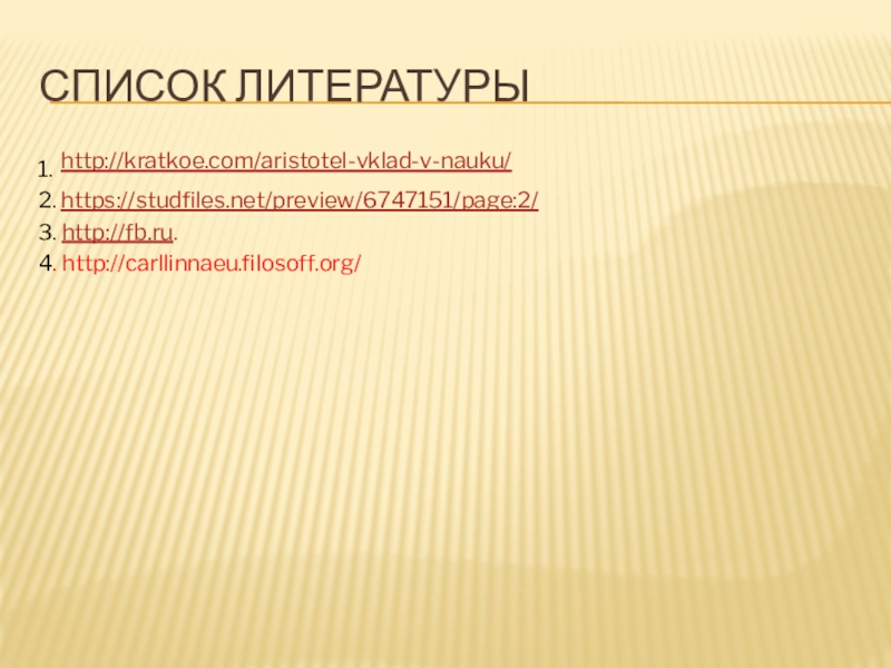 3) Является создателем системы органического мира, согласно которой все растения были разделены на 24 класса. В животном мире он выделил 6 классов: насекомые, черви, гады, птицы, рыбы и млекопитающие.