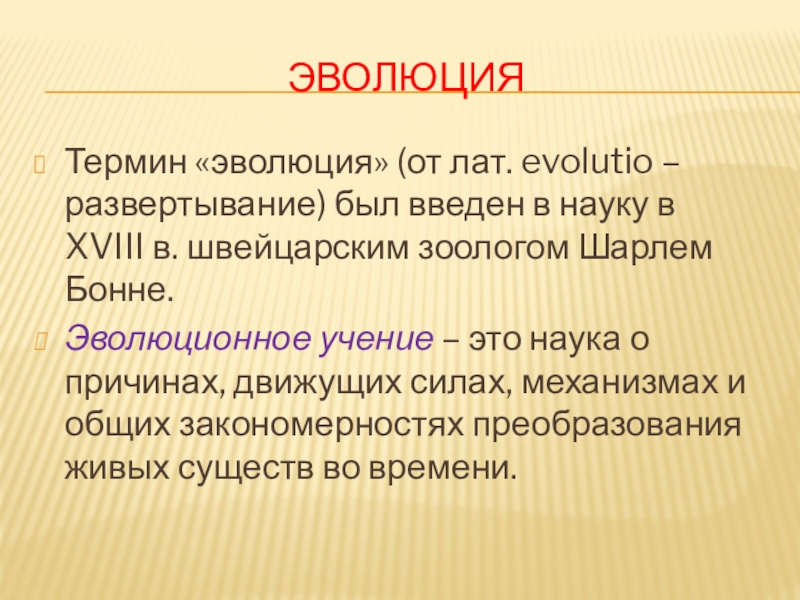 Термин «эволюция» (от лат. evolutio – развертывание) был введен в науку