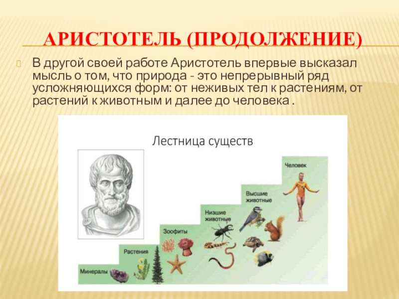 что природа - это непрерывный ряд усложняющихся форм: от неживых тел к растениям, от растений к животным и далее до человека .