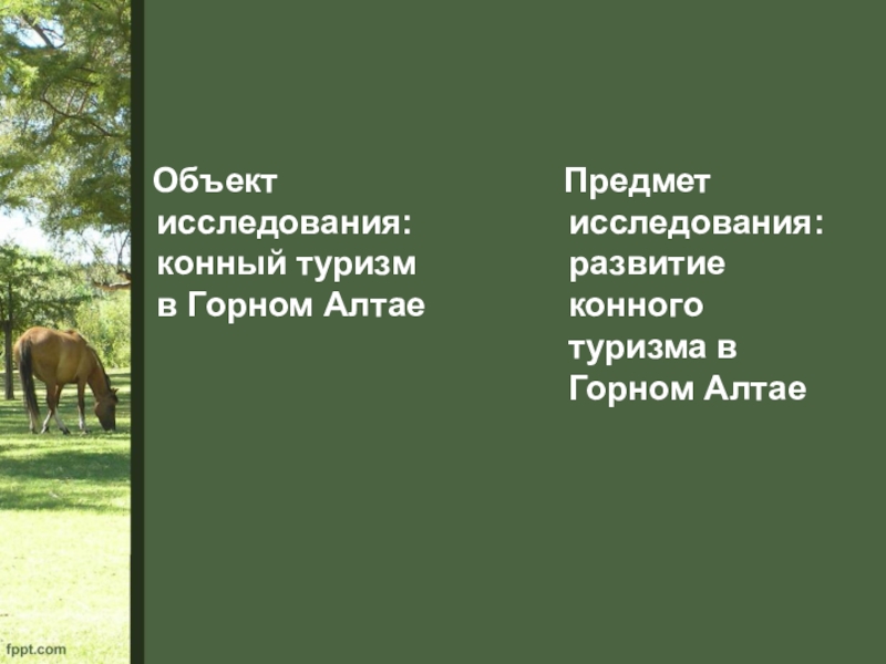 Предмет исследования: развитие конного туризма в Горном Алтае